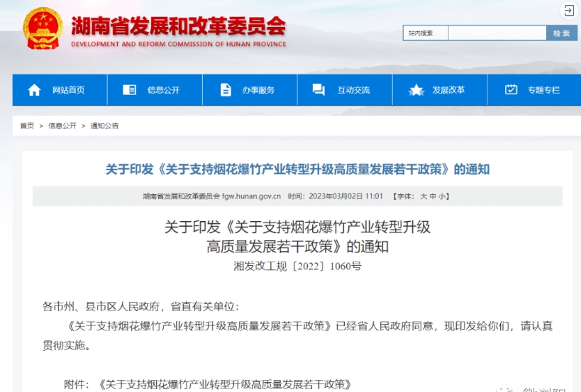 重磅!湖南出臺政策,支持煙花爆竹產業轉型升級高質量發展!